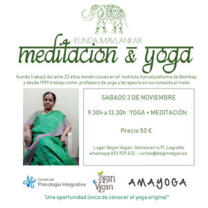 La profesora de yoga KUNDA MAVLANKAR es nacida en Bombay, Maharastra, India. Después de su educación formal, tomó el yoga como carrera. Su educación en yoga la recibió en el Instituto Kaivalyadhama de Bombay, así como en la sede de Kaivalyadhama en Lonavala, Maharashtra, India. Su experiencia práctica en Yoga la adquirió en el centro de Kaivalyadhama en Bombay, donde trabajó como profesora de Yoga durante 23 años. Desde el año 1999 trabaja como profesora de yoga, así como yoga terapeuta de forma independiente en Bombay. Como una persona con experiencia, conoce los diversos aspectos de la práctica del yoga como son las asanas, el pranayama, las kriyas y la meditación. Estudió los aspectos filosóficos del yoga bajo la guía del pasado director de Kaivalyadhama Swami Digambarji. Tuvo también la oportunidad de aprender de él las prácticas especiales del kriya yoga para su aplicación en la purificación interior y el crecimiento de la persona. También de él aprendió la recitación de los mantras védicos y las bases del yoga. Ha visitado varios países como Alemania, Italia, países Bajos, Islas Mauricio… etc, para ayudar a las personas a conocer el yoga. Además del yoga, ella ha estudiado la ciencia milenaria del ayurveda e intentando mantener un enfoque holístico, puede ayudar a las personas a mejorar en diversos trastornos como en los problemas de espalda, artritis, hiperactividad, migrañas, etc. En definitiva damos la bienvenida a una profesora experimentada en la antigua ciencia del yoga que puede ayudarnos a conocer esa ciencia directamente de sus ancestrales y milenarias raíces.
